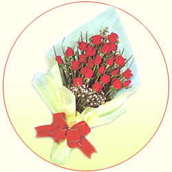 Wish your near and dear all the best for their Bon Voyage or Examinations or for any occassion, with this bouquet of 15 Red roses wrapped in a net.