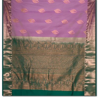 Kalaneta Purple powerloom fancy pattu saree with contrast Green color fancy tested zaree Border, body arranged with buttas and Contrast pink color pallu compactly woven . Blouse piece Attached. NOTE: Same day Delivery for Hyderabad and Secunderabad. For other places requires minimum 2 to 3 WORKING DAYS