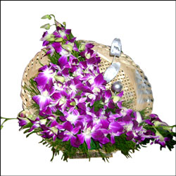 Purple Orchids stand for its charm. Send this specially arranged basket of 18 Orchids with green fillers to charm her all day long.