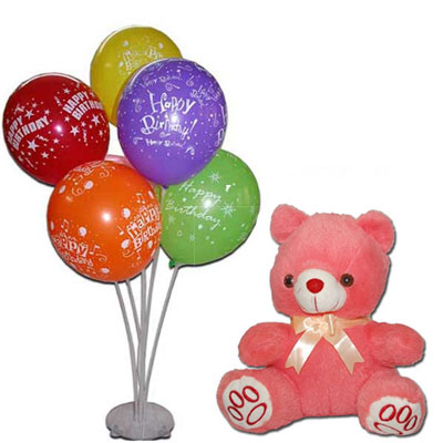 Happy Birthday Balloon stand+ Dark pink Colour Teddy BST-13009