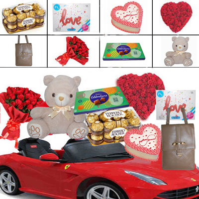 16 Pieces ferrero rocher chocolate box + Love Foil Balloon + Delicious heart shape Pineapple cake - 1kg + Beautiful Heart shape flower arrangement with 60 Red roses + Sling Bag- 11671-A -001 SIZE:17CM*13CM+ 25 red roses flower bunch wrapped with Decorative paper + Cadbury Celebrations Chocolates - Weight 154.2gms + Light Brown Colour Teddy BST-13009-001 Height: 30cm Note: Same day Delivery for Hyderabad and Secunderabad. For other places requires minimum 3 to 4 WORKING DAYS
