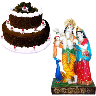 RADHA KRISHNA - 1105 -001 Size: 23cm * 39cm + Yummy delicious round shape 2 step chocolate cake 3Kgs
