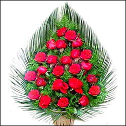 Wish her on her great day with this exotic one sided arrangement of 25 Dutch Roses along with crisp greens in an exotic wicker basket + Free Message Letter + Free Digital Photo.