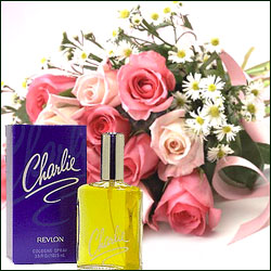 Charlie Blue Perfume +12 Mixed Roses Bunch + Special greeting card