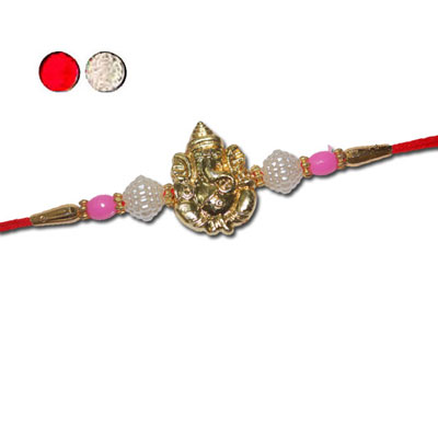 Designer Fancy Rakhi - FR- 8340 A (Single Rakhi) + Free Roli and Chawal. Note: Image shown is indicative. Same or Similar Rakhi will be delivered depending on stock