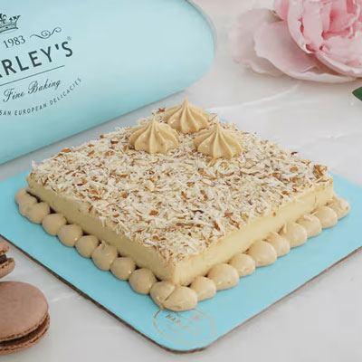 American Almond Coffee Cheesecake - 600gms Savour a classic New York-style cheesecake with a twist - hints of coffee and roasted almonds add sophistication and aroma, reminiscent of a favourite coffee shop treat. Note: Deliveries only in Available Cities.