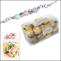 Friendshipday Band + Ferrero Rocher Manderly Gift Pack Imported Chocolates - 16 Piece pack + friendship day Greeting card