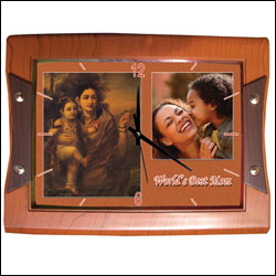 Customised Wall Clock with Ravi Verma Painting (For Mother) : Wish your dear one with these special customised wall clock which comes with laminated photo along with Ravi Verma Painting. And the Message will be " World's Best Mom". size: 34 cm x 29 cm NOTE: LEAD TIME FOR SHIPPING: 2 to 3 WORKING DAYS. Pls send the photo soft copy to support@us2guntur.com along with order no.