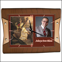 Customised Wall Clock with Ravi Verma Painting (For Teacher) - Wish your dear one with this special customised wall clock which comes with laminated photo along with Ravi Verma Painting. And the Message will be "Acharya Devo Bhava". size: 34 cm x 29 cm NOTE: LEAD TIME FOR SHIPPING: 2 to 3 WORKING DAYS. Pls send the photo soft copy to support@us2guntur.com along with order no.